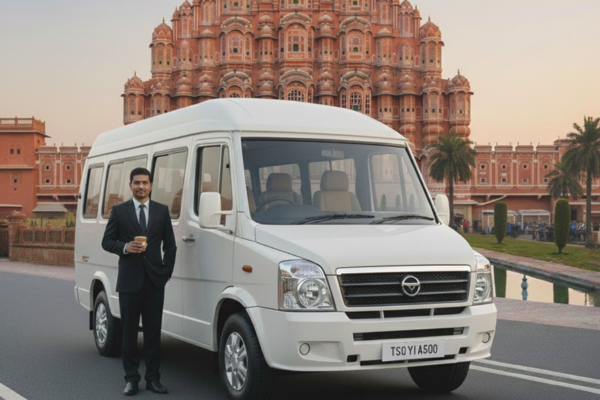 Spacious and versatile, available in 12–17 seater options. Designed for relaxed group journeys with pushback seats, ample legroom, and high-roof comfort. Starting rate: ₹22/km. Perfect for family tours, corporate trips, and outstation group travel.